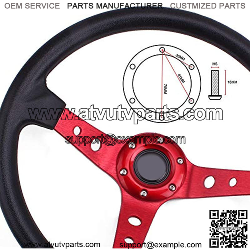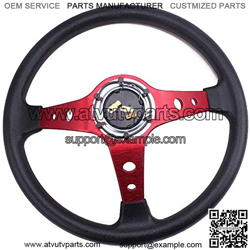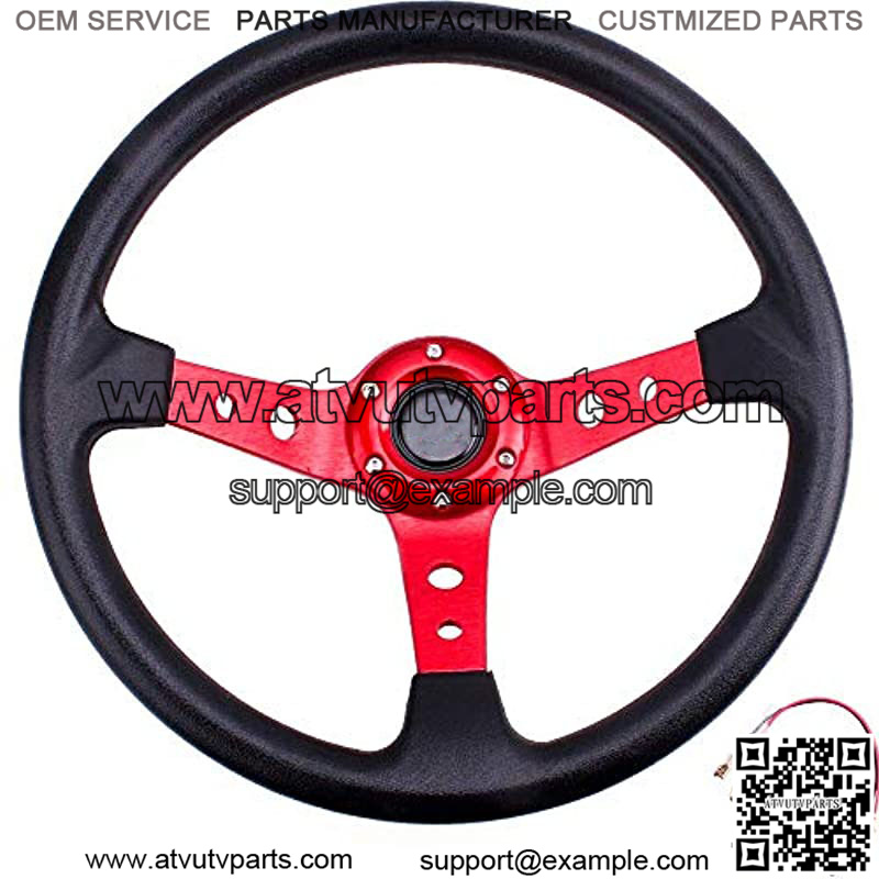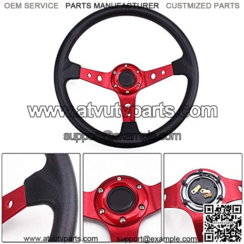 Universal Drifting Deep Dish Racing Steering Wheel 13.8??/350mm 6 Bolts Grip Vinyl Leather & Aluminum with Horn Button for Car -Red