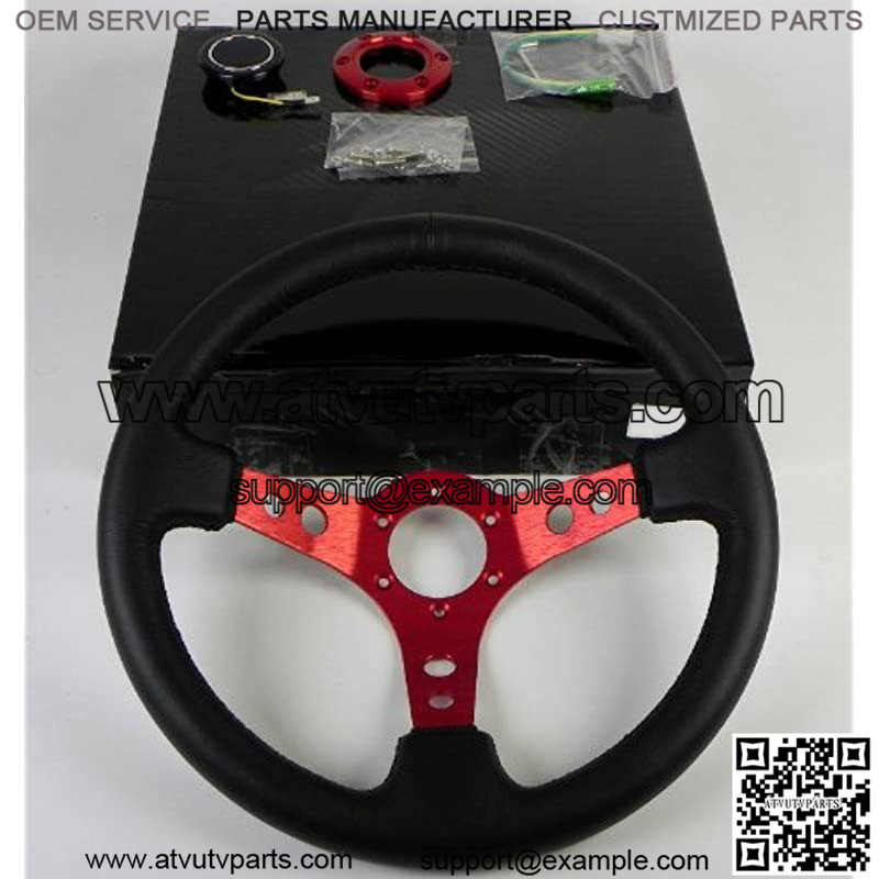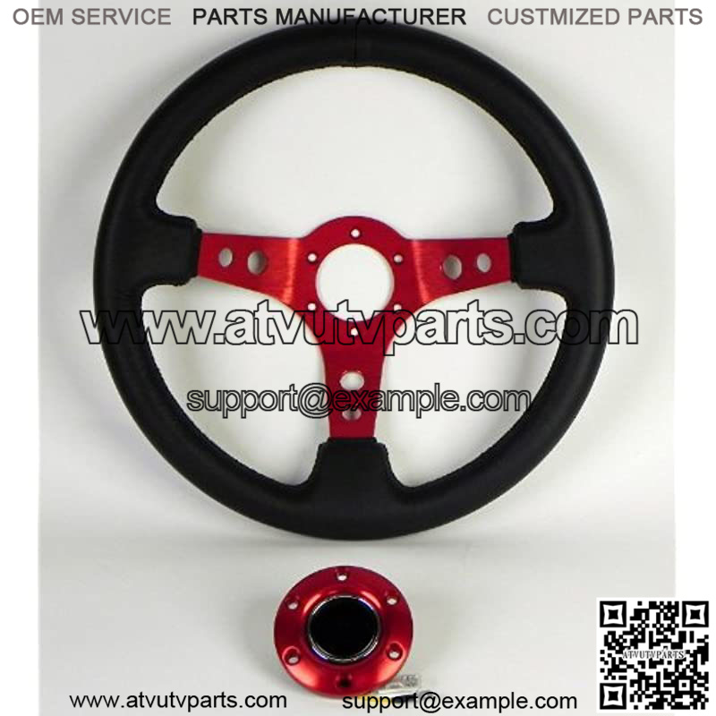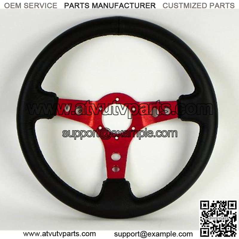 Steering Wheel – 06 (Deep Dish) – 350mm (13.78 inches) – Black Leather with Red Spokes – Part # ST-006R-RD