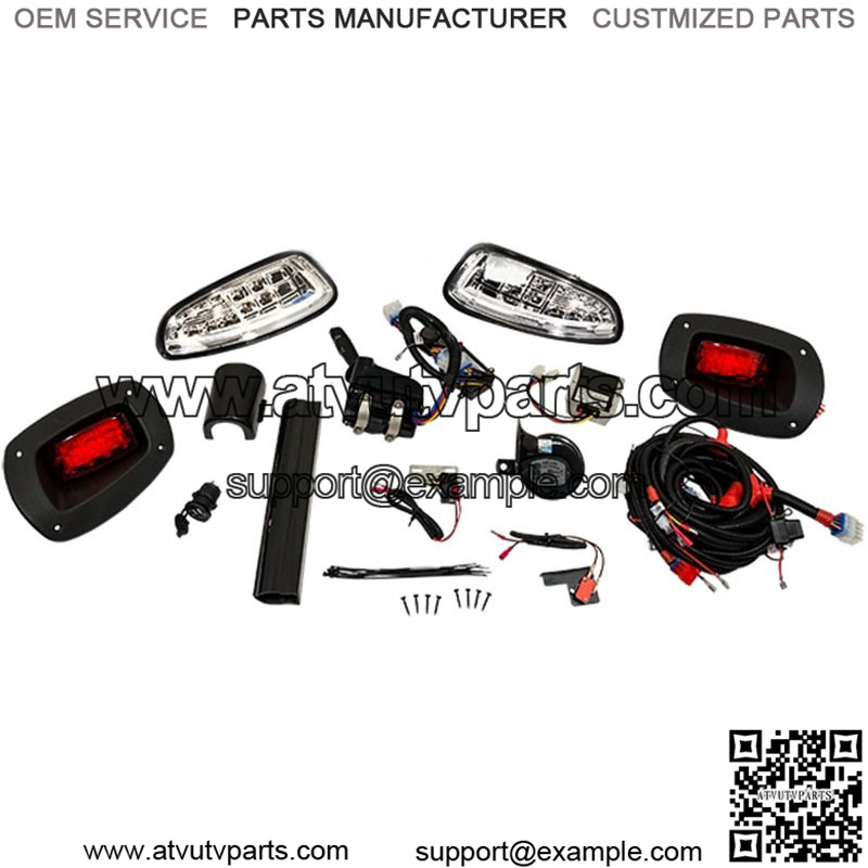 Description & Features The Next Generation Light from ! The New Ultimate Plus Light Kit has been developed to take the guesswork out of adding or upgrading your cars lighting. Our New Light Kits are now packed with many additional features like a built-in voltage reducer, turn signal, brake lights, high/low-setting, horn and dual-USB charging port! Kit Features: Fits RXV 2008-2015 Gas & Electric Models High/low beam functionality with automotive style daytime running lights Turn signal stalk includes switch for hi/low beam, Daytime Running Lights, 2 Position accessory lighting switch (Light Bars, Underbody lights) & Horn button Self-canceling turn signal indicators Dash mounted dual USB port 7.5 amp 12 volt accessory connection in dash for additional accessories such as a radio or interior lighting 12-48 Volt operation with built in voltage reducer Mechanical brake switch with built in brake light timer Kit Includes: LED headlights & tail lights Automotive style turn signal stalk & steering column cover Dual 5 volt USB charging port with 1 amp and 2.1 amp output Hazard switch & horn Wiring harness, installation hardware & templates for cut in lights (*if applicable)