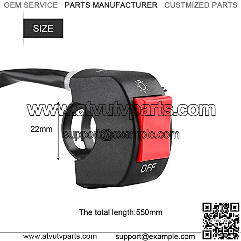 Universal Handlebar SwitchDC 12V/10A. Wire Length: 19.68inch/ 50cm; Fit 7/8″ handlebar.