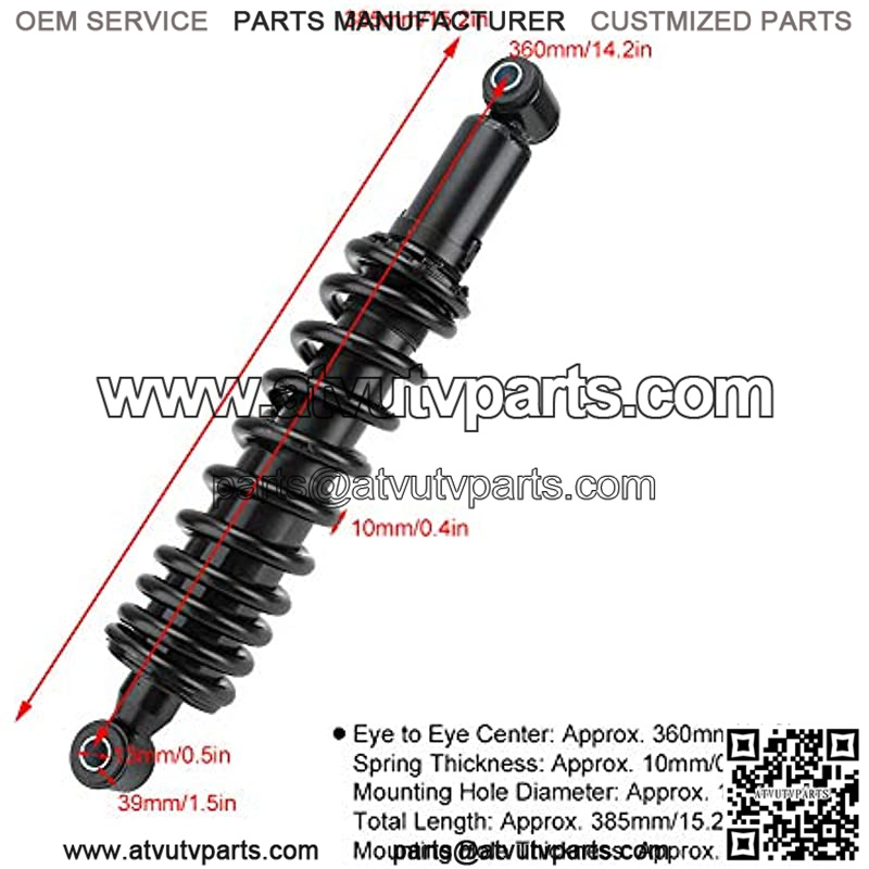 Motorcycle Shock Absorber High Driving Performance Stainless Steel Black 360mm 14.2in ATV Motorcycle Shock Absorber Universal for Front Rear Suspension Strut Shock Suspension