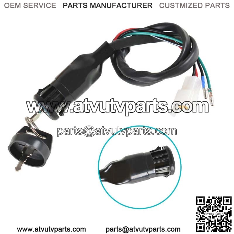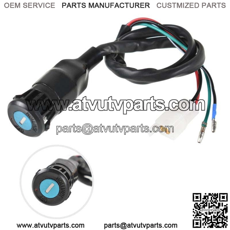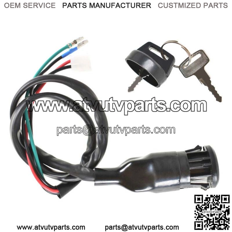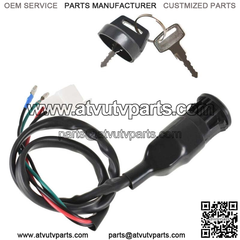 This brand new ignition switch assembly comes with two covered key, Two wires in one plug and another two are separate.