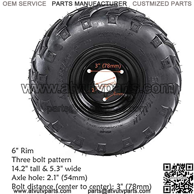Size: 145×70-6Rim: 6″Pattern: 3 boltTire tall: 14.7″Tire Width: 5.5″Bolt space: 3″ (78mm)