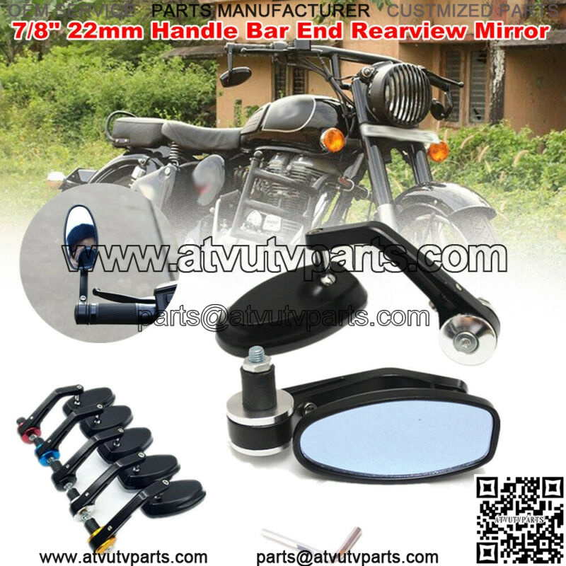 Pair CNC Motorcycle ATV Scooter 7/8″ 22mm Handle Bar End Rearview Side Mirrors