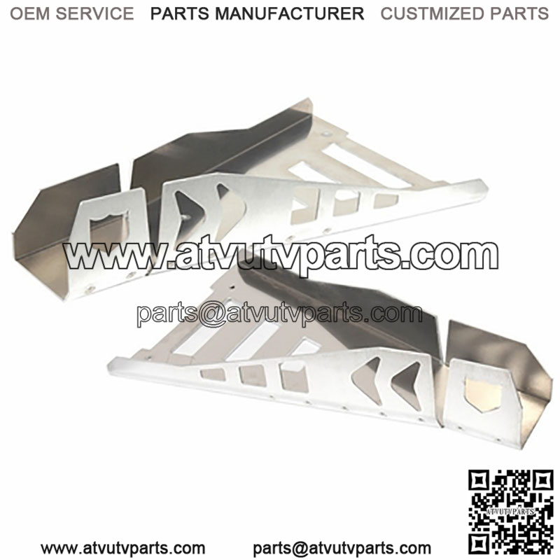 These aluminum a-arm guards designed to protect your UTV’s a-arms and add strength to your stock a-arms. Made from the strongest and lightest weight 1.25 inch thick aircraft aluminum alloy, these a-arm guards have steel brackets to add support to your stock a-arm tubes while staying lightweight. The CAD designed guards are easy to install and will get you out riding the trails fast without constantly worrying about your a-arms getting damaged.