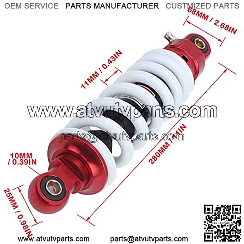Universal Fitment- Rear suspension shock absorber is suitable for all off road vehicles, dirt bikes, Pit bikes, quad bikes, Gokart, ATV motorcycles, etc. Fit for Apache Aeon Eton, for Quadzilla (some), for Adley (some), etc. with 11in mounting hole distance.