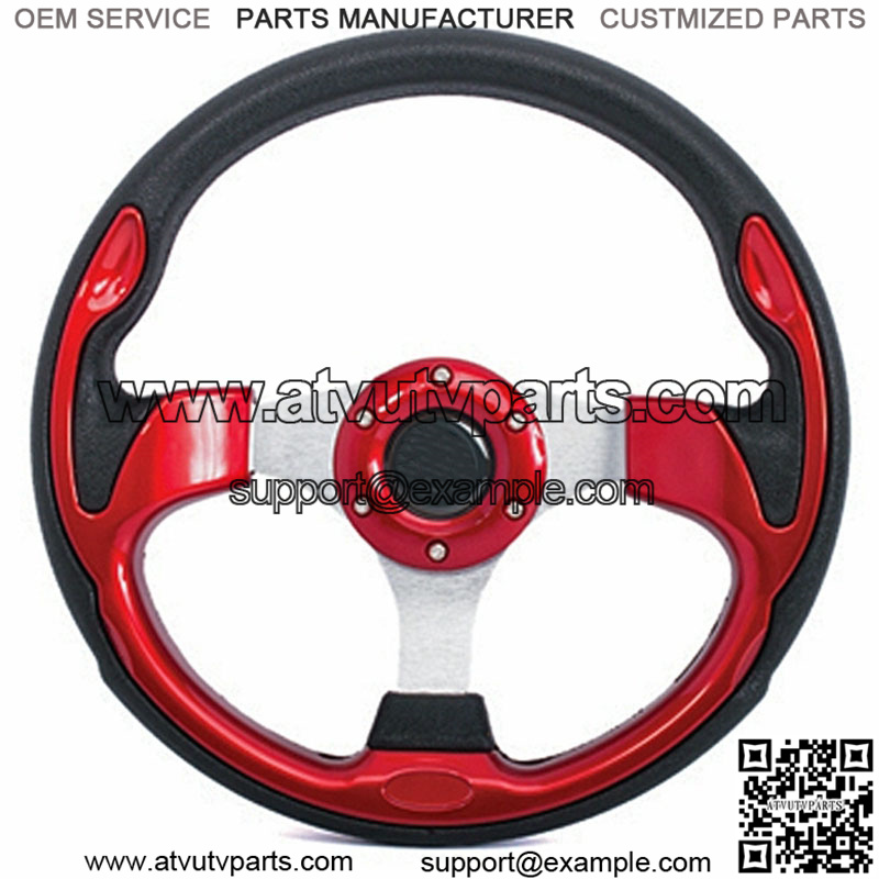 12.5″ Diameter Sport Steering Wheel Style: Color: Red Easy installation on EZGO, Club Car and Yamaha with Custom Adapter (sold separately). Note: Horn button is for aesthetic purposes only Add a Black Adapter (Optional – $29)