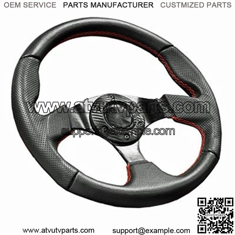 13″ Diameter Steering Wheel Style: With Red Stitching Color: Black, Carbon and Red Easy installation on EZGO, Club Car and Yamaha with Custom Adapter (sold separately) Note: Horn button is for aesthetic purposes only Add a Black Adapter (Optional – $29)