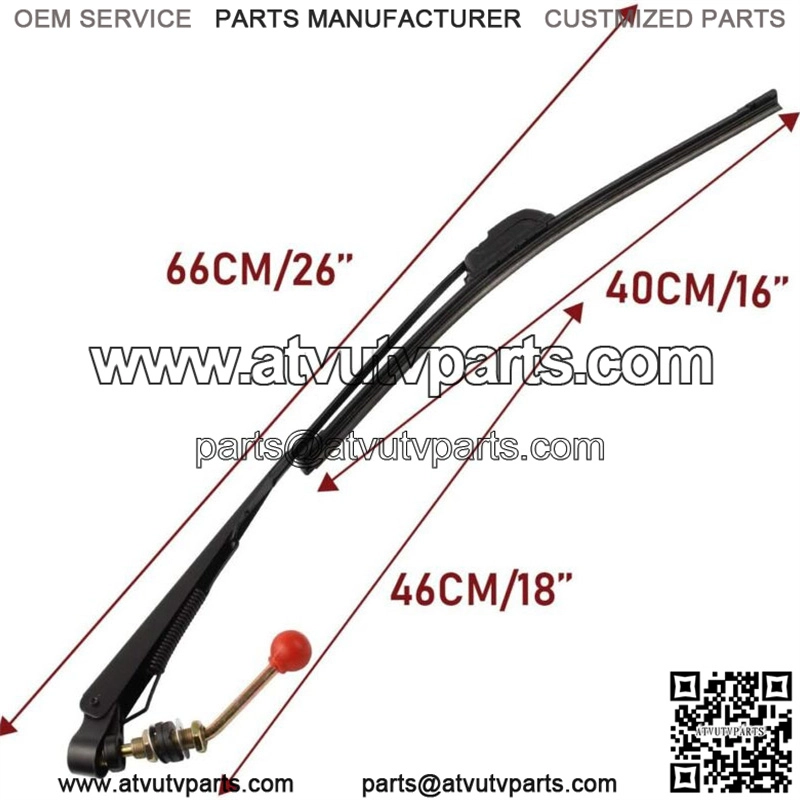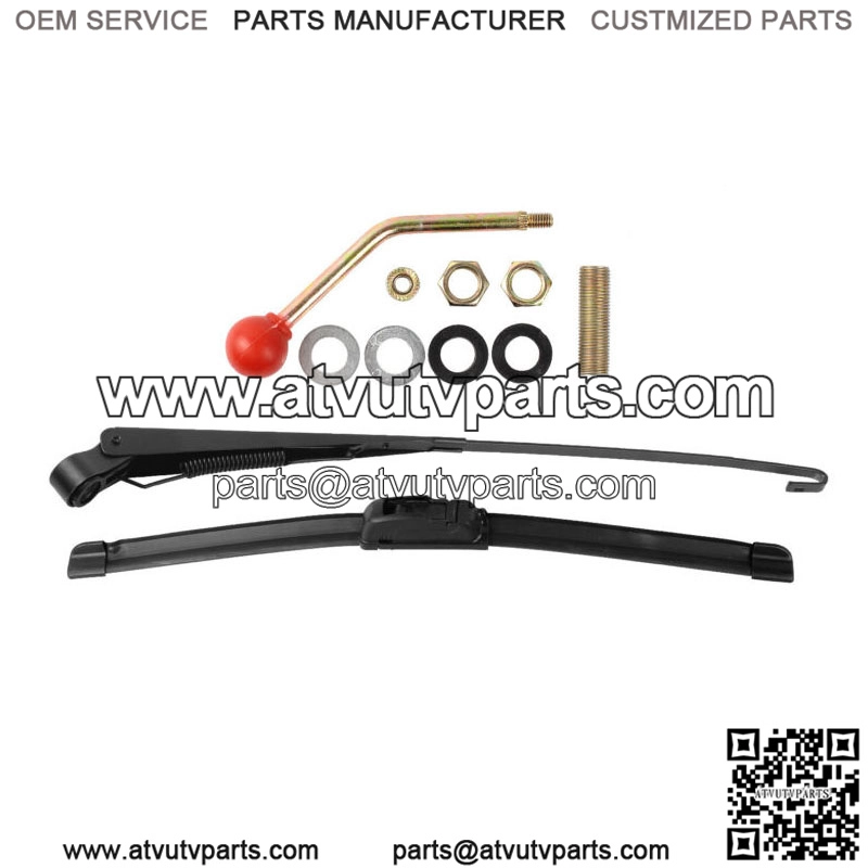 2. Great UTV windshield wiper kit size: 16″ Rubber Blade, 18″ from the center for the handle to the end of the wiper on most SxS such as RZR Ranger X3.