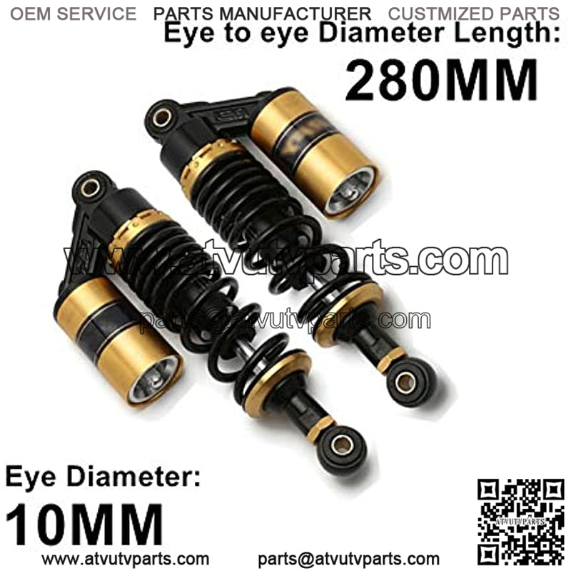Shock Absorbers 1 Pair Spring 7mm 280mm 11″ Eye Diameter 10mm Motorcycle Air Shock Absorber Rear Front Suspension Fit for ATV Quad Bike Black Golden D30 Rear Shock