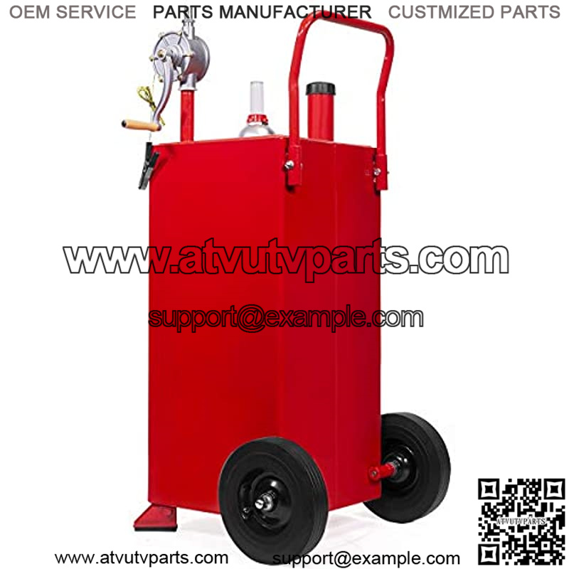 This 30 gallon gas caddy is perfect for storing fuel for automobiles, gas powered lawn and garden tools, motorcycles/ATVs and much more. The large capacity tank allows you to store up to 30 gallons of fuel and is easily transported with the built-in wheels. This caddy is safe for storing gasoline, diesel, kerosene and even bio diesel. This 30 gallon gas caddy is perfect for use at home, shop or on the go. Feature: Easy to use reversible rotary pump fills and siphons by simply reversing the cranking action The easily accessible, wide diameter fill neck provides a larger opening for safer, faster refills with less spilling and less waste of expensive fuel Heavy-duty steel makes up the rugged push/pull handle, which is conveniently angled, offering the leverage and control you need. The strength and design of the handle allow you to effortlessly tilt, then push or haul the caddy as you hand deliver the fuel source directly to the application An accurate, easy-to-read fill gauge lets you quickly determine your fuel level at a glance Kink-free hose ensures maximum flow while making fill ups fast and convenient. Safety discharge clamp ensure the item being filled is grounded to prevent accidental static discharges Specifications: Color: Red Material: Steel Maximum Capacity: 30 Gallons Rotary Pump: Hand Crank/Manual Hose Size: 8 Feet Fuel Level: Gauge Type Vented: Yes Tire Diameter: 10″ Safety Feature: Anti-Static Grounding Clamp Handle Width: 10-1/2″ Tire Size: 10″ Overall Dimension: 21″(W) x 22″(D) x 44-1/4″(H) Assembly Required: Yes Package Includes: 30 Gallon Gas Caddy Hand Pump Siphon/Discharge Hose Vent/Fuel Level Gauge 10 Pneumatic Tires