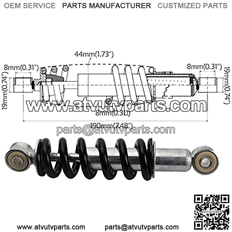 Suspension Shock 190mm 250lbs Rear Shock Absorber Suspension for 2 Stroke Quad ATV Pit Dirt Bike for Bike car