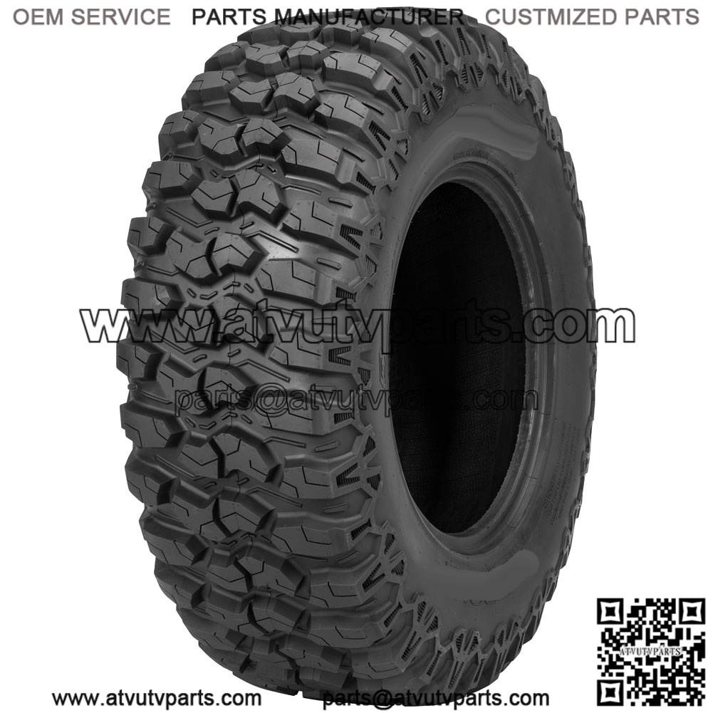 Designed specifically for todays performance UTVs. The Trail Saw radial tire is a true coast-to-coast performance tire, from the deserts in the west to east coast woods! Aggressive tread spacing combined with an 18mm depth for traction in a wide variety of terrain. Tread design wraps down onto the sidewall for added protection and additional traction in rutted terrain. The performance driven Crown Radius tread profile is engineered for predictable steering control through hardpack, ruts and uneven/rocky terrain.