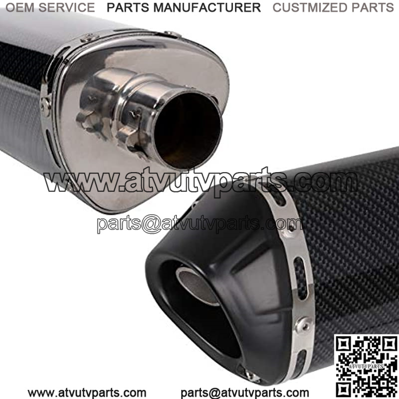 Material: Stainless steel, and covered with carbon fiber color vinyl that make the exhaust looks Luxury and attractive