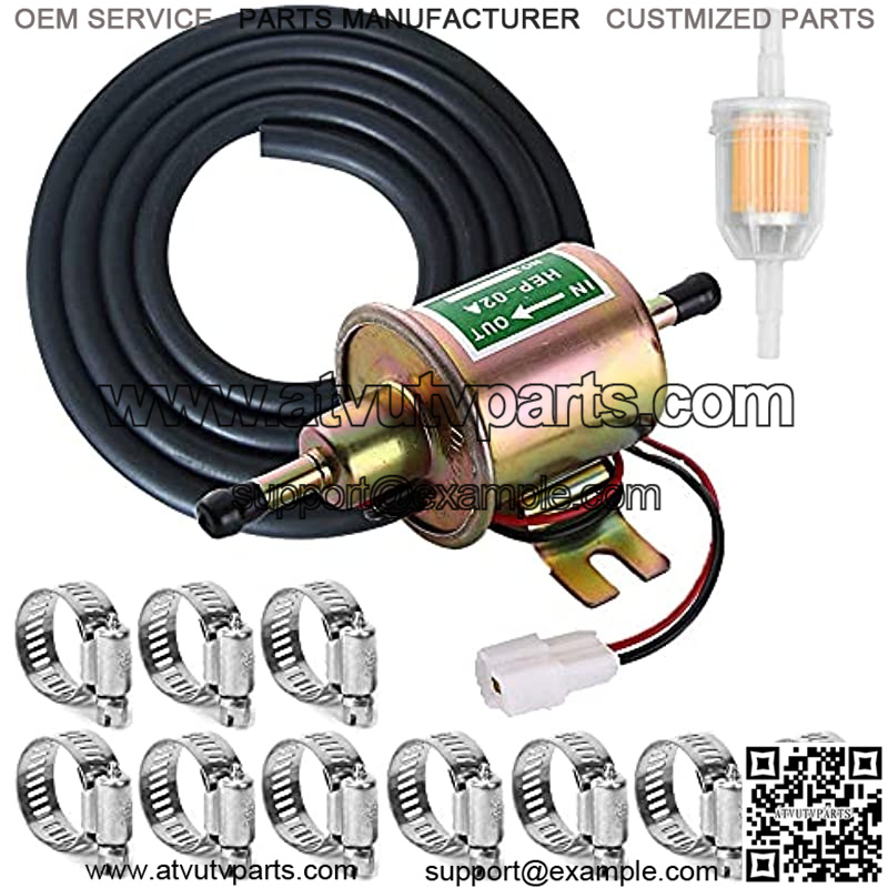 Universal Electric Fuel Pump Kit for Cars Carburetor Lawn Mower HEP-02A , Inline 12V (3-6PSI) Electric Fuel Pump + 2 Meter/6.56-Foot 5/16″ ID Fuel Line,1pcs Fuel Filter and 10pcs Hose Clamps