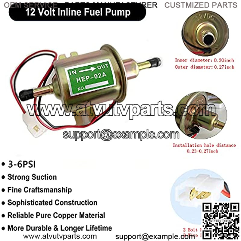 Wide UsageElectric fuel pump kit fit for all 12 Volt Cars (such as Toyota, Ford, Honda, Mazda, and any other suitable car), Trucks, Boats & Generators, Lawnmower Golf Cart HEP-02A.