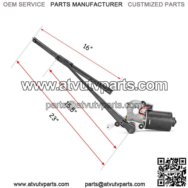 >>16″ Wiper Blade,14″ Wiper Arm. About 23″ from the center for the handle to the end of the wiper. Pls confirm your windshield size before order.