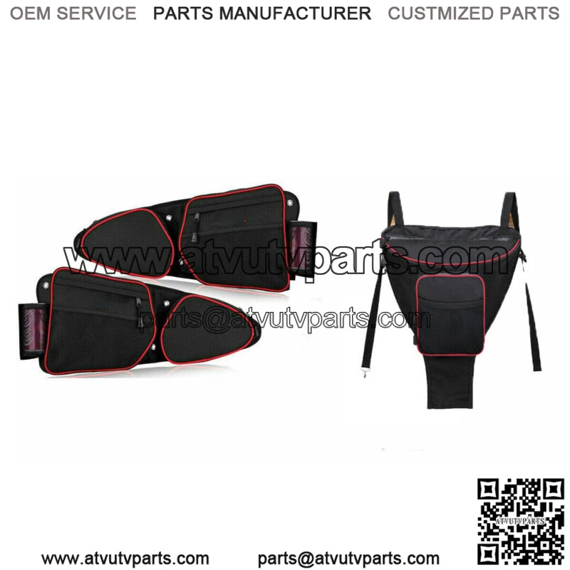 DescriptionPackage includes:;2 Door bags (driver-side and passenger-side) and 1 center bag.;Side Door Bags:Material: Weather-resistant heavy duty1680D NylonColor: Black bag with red Stitching;1.The whole bag is water resistant, including the bag or the zipper,;we use the quality PVC to make it sturdy enough.2. Protect your knees and add storage to your factory doors Stock Door Bag with Knee Pad.3. Zipper position is Increased 1cm, width increased 1.2cm (0.5in)4. Keep sunglasses, dust masks, tire gauges, cell phones….anything you like having at hand, close when you ride!5. Keep important items away from the elements or blowing out of the vehicle6. Won’t take up valuable space!7. Clean looking way to store small items!These are for the front doors we sell them in pairs you will get one driver side and one passenger side.These fix my number one complaint on are xp1000 of my knee getting beat up on the door.;;UTV Cab Pack Storage Bag:Material: Weather-resistant heavy duty1680D NylonColor: Black bag with red Stitching;1. The whole bag is water resistant, including the bag or the zipper,;we use the quality PVC to make it sturdy enough.2. Keep sunglasses, dust masks, tire gauges, cell phones….;anything you like having at hand, close when you ride!3. This bag provides a padded place to stow items in the safety of the cab.;4. Clean looking way to store small items!5. Front zippered pocket for additional storage and easy access.Notes:If your car model is Yamaha, you need to drill holes in the door,;and our products are without screws.;;Fitment:Compatible with;2014-2023;Polaris XP 1000;Compatible with;2014-2023;Polaris XP4 1000Compatible with;2015 2016 Polaris 900 ( 60″ Wide Models )Compatible with;2014-2021;Polaris XP Turbo/ XP 4 TurboCompatible with;2015-2022;Polaris Turbo S