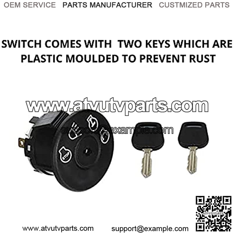 583068901 Starter ignition switch come with two keys Our keys are plastic moulded on grip to prevent rust Switch is made out of heavy duty plastic